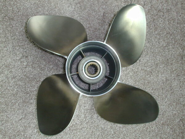 PowerTech Propeller 13 1/4″ Diameter x 19 Pitch (13 spline hub) stainless steel right hand rotation 4 blade propeller. Part Number OM140RXB. It fits various 70 hp thru 140 hp, for 13 spline outboard motors depending upon spacers, washers and attaching nut. Please note NO hardware is included with this propeller.
