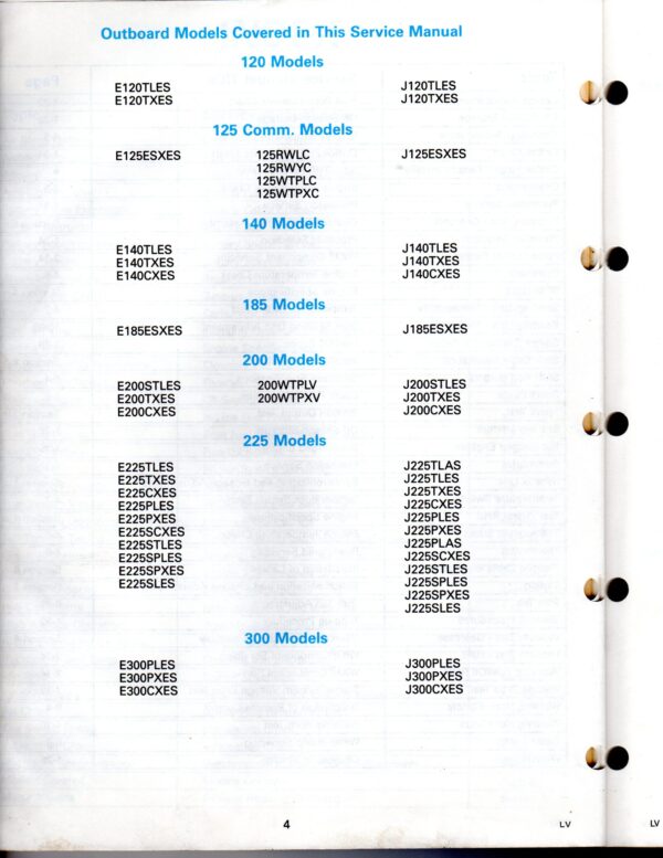 Used 1989 Johnson / Evinrude Service Manual for 120 thru 140 and 185 thru 225, 300 Models two stroke outboard models (see photos for all models included in the manual). Part number 507875.