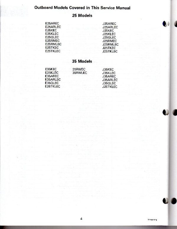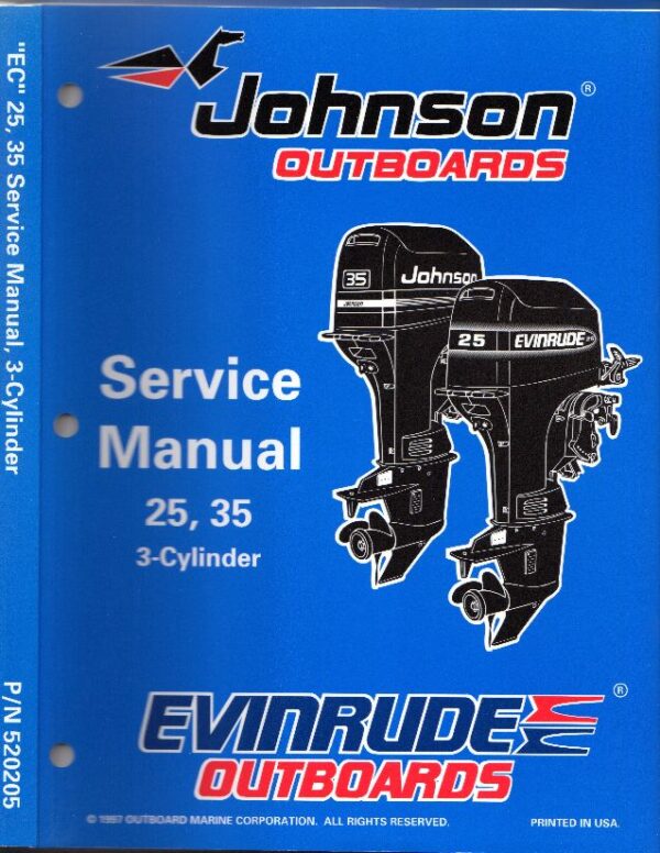Used 1998 Johnson / Evinrude Service Manual 25 & 35 hp 3 Cylinder two stroke outboard models (see photos for all models included in the manual). Part number 520205.