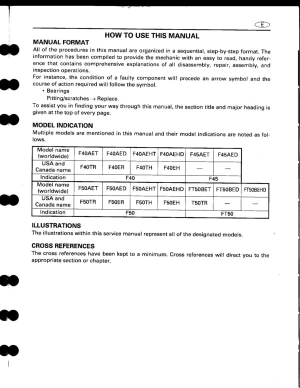 This manual was in a dealer’s active library and shows normal wear and tear such as discoloration due to age, smudges and wrinkled edges due to service shop use.