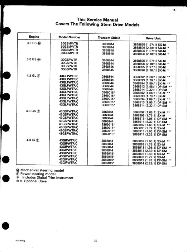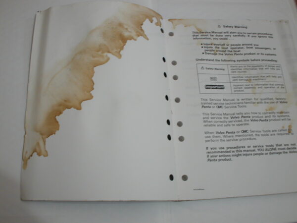 Used Volvo Workshop Manual Part 1999″WT” Vertical Drive and Transom Shield Part Number 3850075.